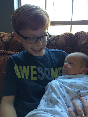 My dear friend, Jill, had a sweet little baby boy this month, and Miles never minds when I'm late picking him up from their house after school. Jill snapped this one afternoon.