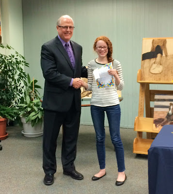 Audrey's painting won third place in her age group at a local art contest. Here, she is shaking hands with the dignitary in attendance (a member of the library board). Ha!