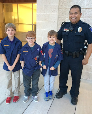 I took Miles, Dillon and Matthew, my Bear scouts, on a tour of the Keller Police Station. The officer was so great; we had a lot of fun!